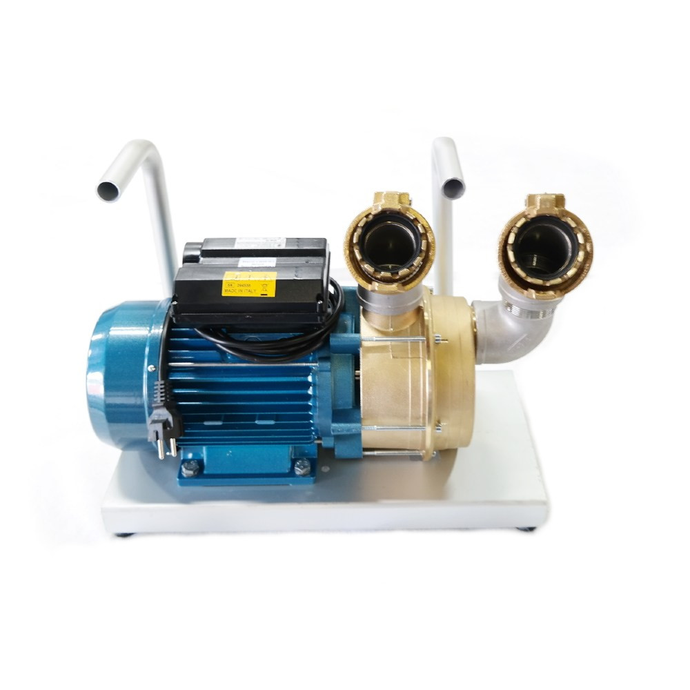 Die selbstansaugende Impellerpumpe arbeitet mit 230 V und 1,5 kW. Nach dem kurzen Befüllen mit Fördermedium ist sie unmittelbar betriebsbereit.